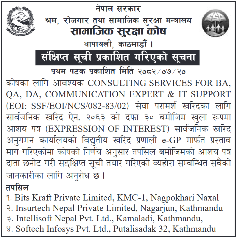संक्षिप्त सूची प्रकाशित गरिएको सूचना !!!