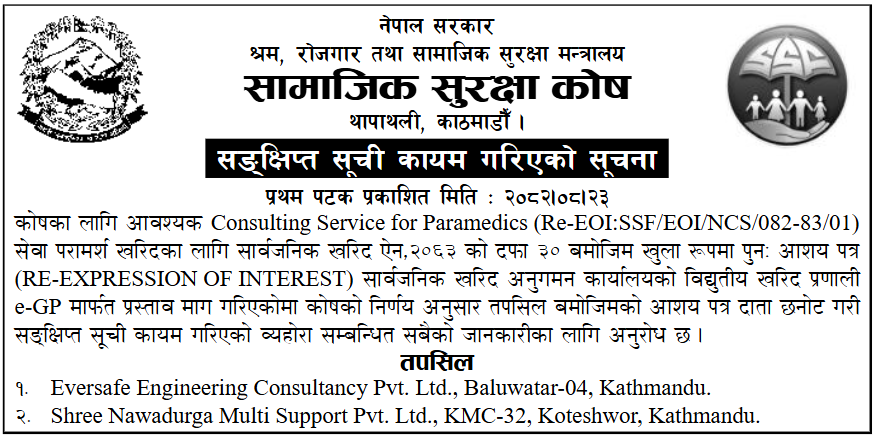संक्षिप्त सूची कायम गरिएको सूचना !!!