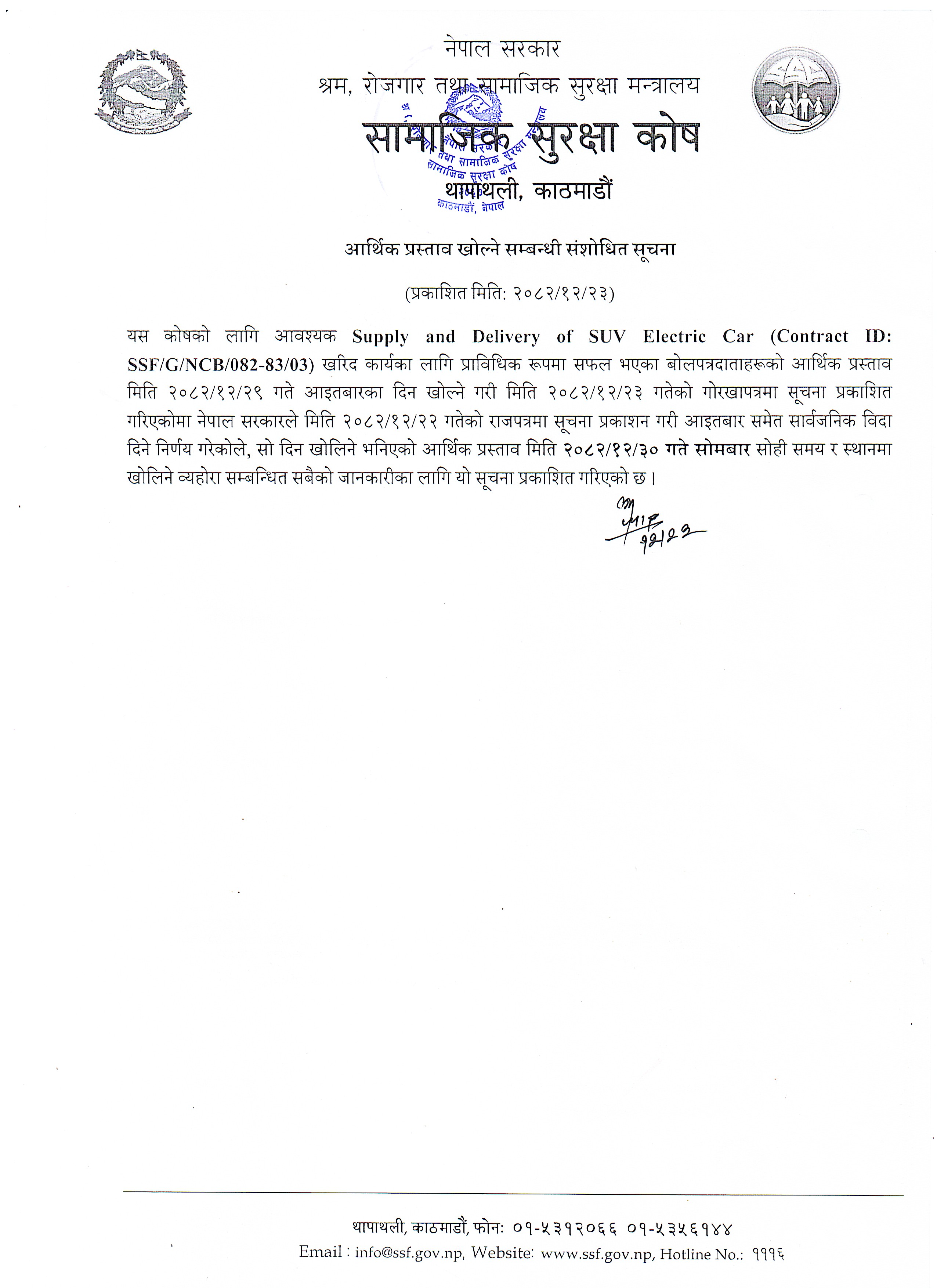 आर्थिक प्रस्ताव खोल्ने सम्बन्धी संशोधित सुचना !!!