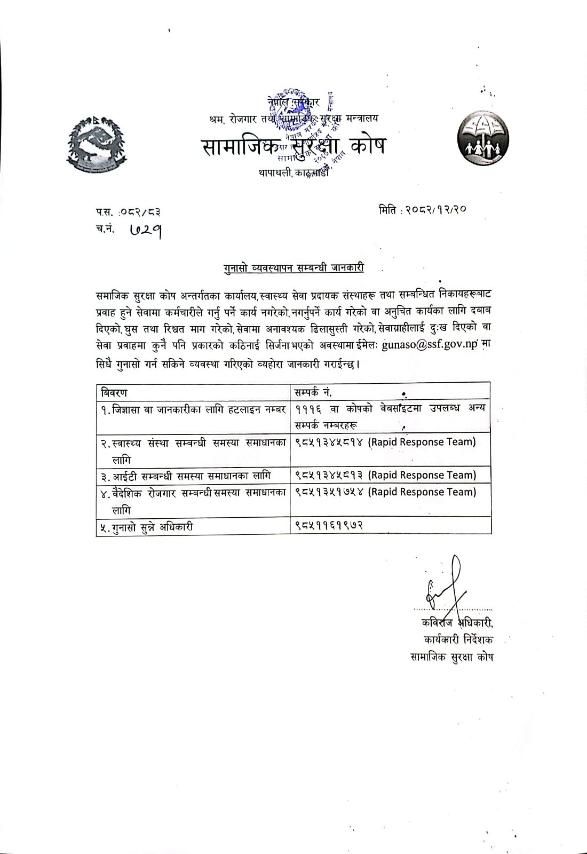 गुनासो व्यवस्थापन सम्बन्धी सूचना !!!