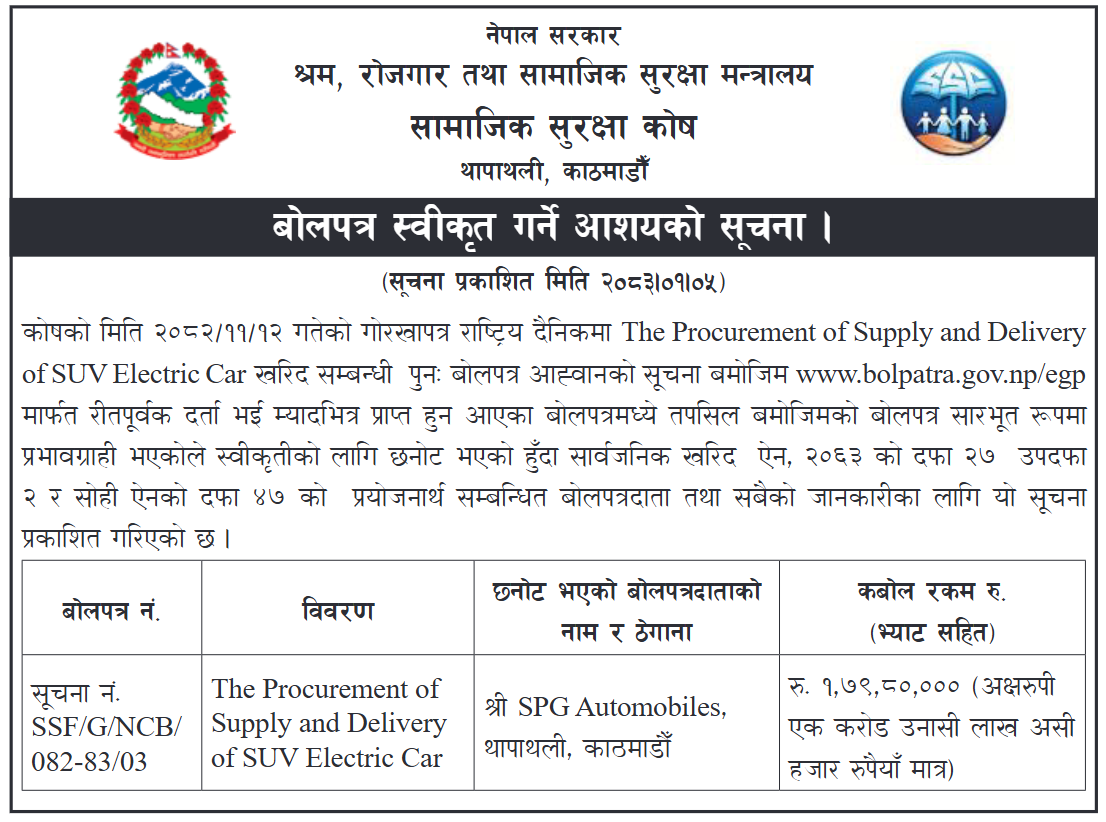 बोलपत्र स्वीकृत गर्ने आशयको सूचना !!!