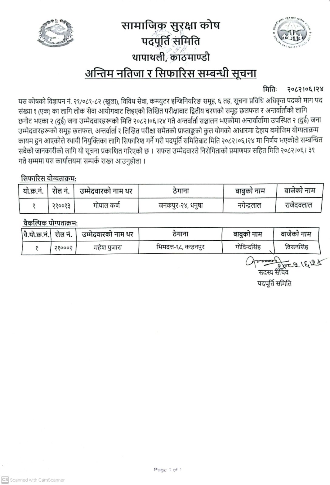 अन्तिम नतिजा र सिफारिस सम्बन्धी सूचना (तह-६,सूचना प्रविधि अधिकृत) !!!