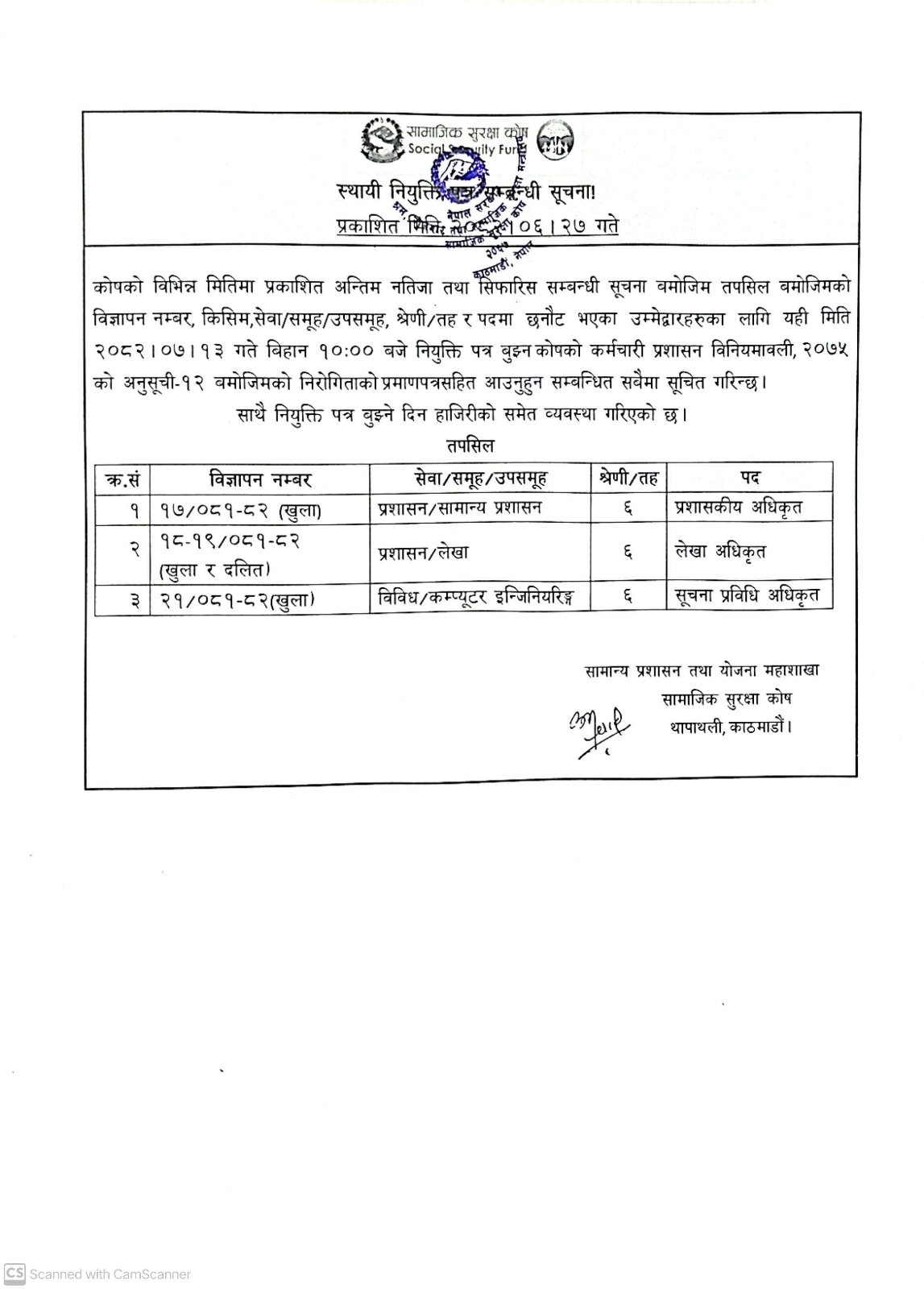 स्थायी नियुक्ति पत्र सम्बन्धी सूचना (तह-६)!!!